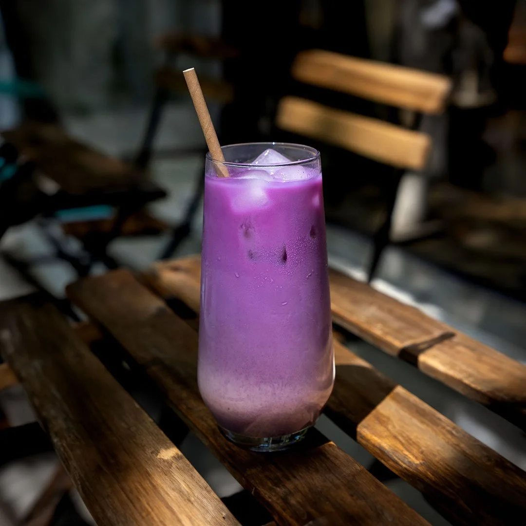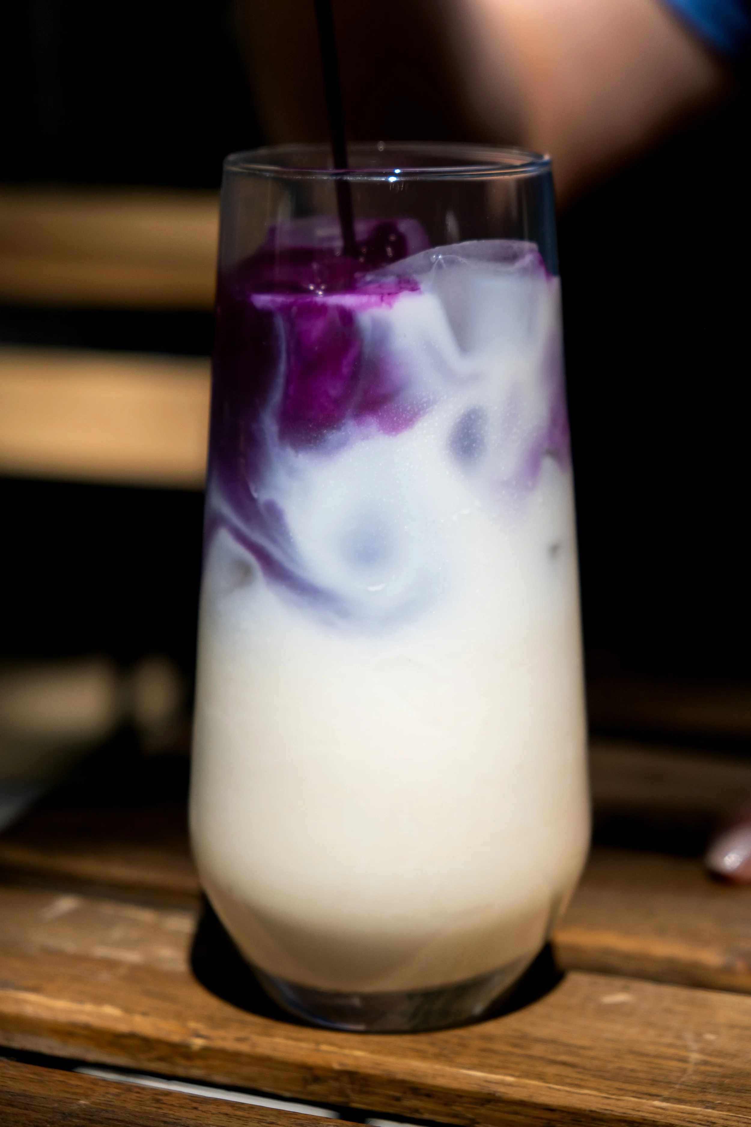 Ube Latte maison au lait végétal, boisson violette tendance à base d’igname pourpre des Philippines. Délicat, sans lactose, instagrammable et naturellement sucré, l’Ube Latte est la boisson colorée incontournable de Shim’Kafé, à Paris 20e.